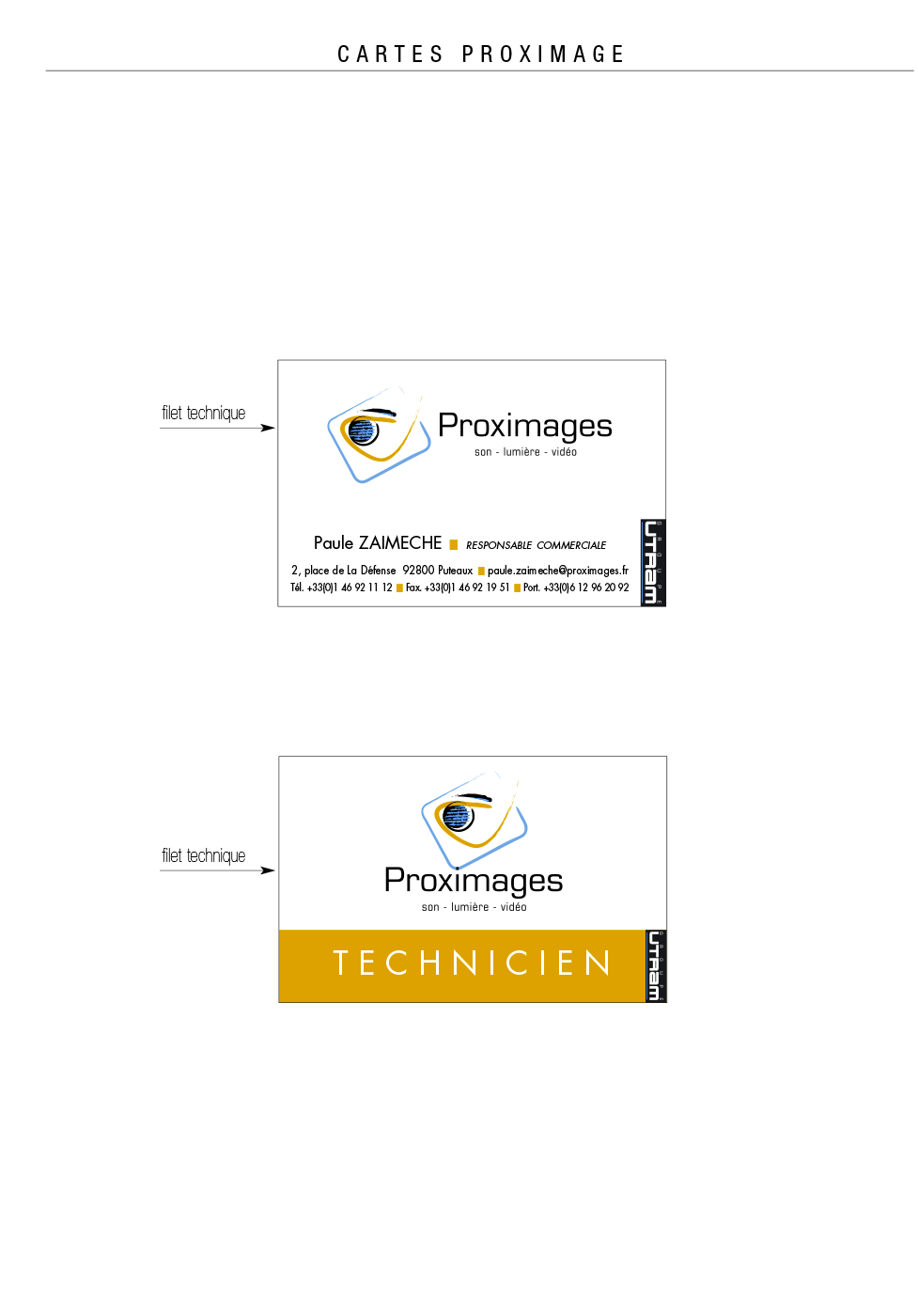 - Création logotype Proximages : suite à l’achat de cette société par le groupe UTRAM, j’ai rencontré la direction pour échanger sur l’identité de cette société et les projets de développement au sein du groupe.