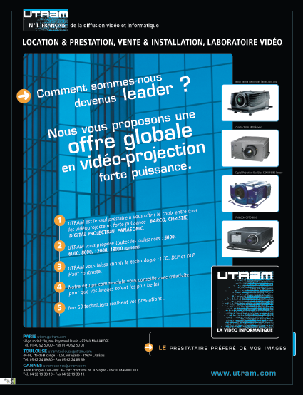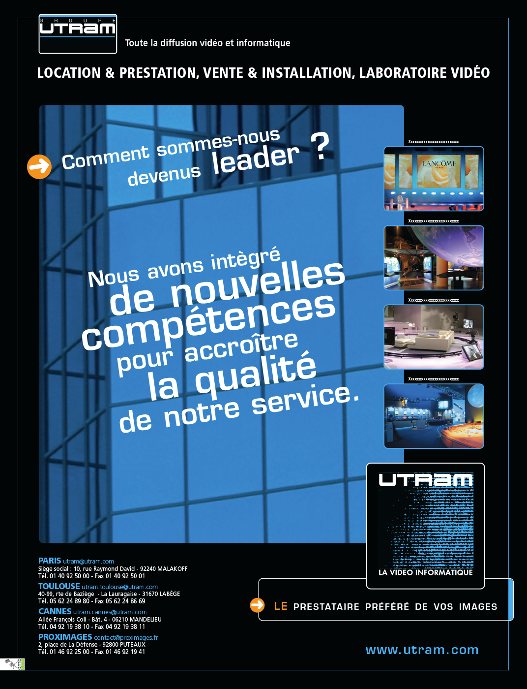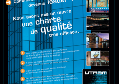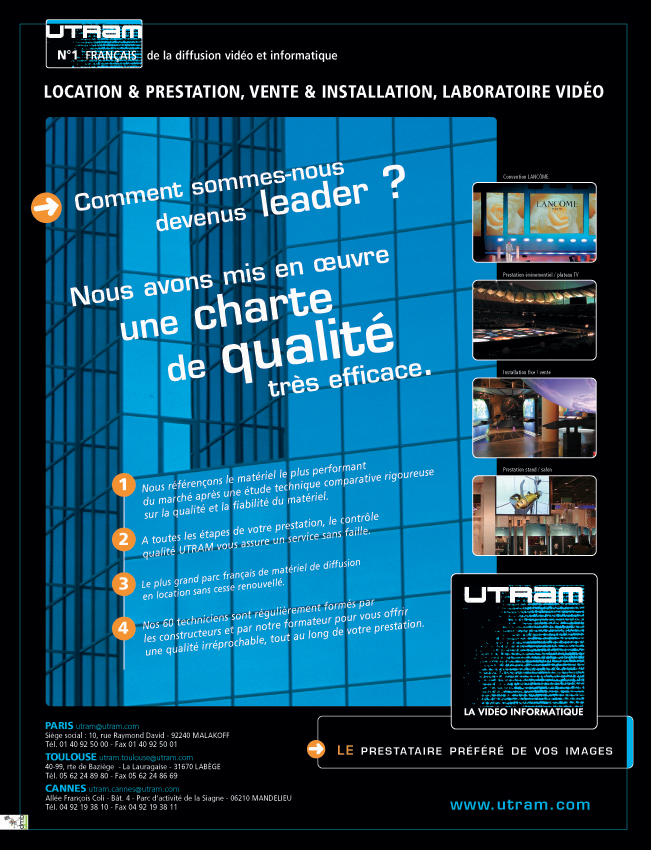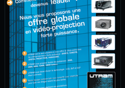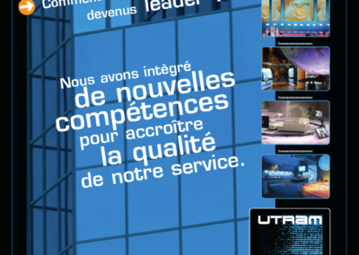 - Projet campagne presse UTRAM (rough, casting photographe, prise de vue studio, maquette presse) : Après acceptation du projet de communication leader du secteur d’activité, j’ai proposé plusieurs types de mises en page avant de valider celle proposée en image.